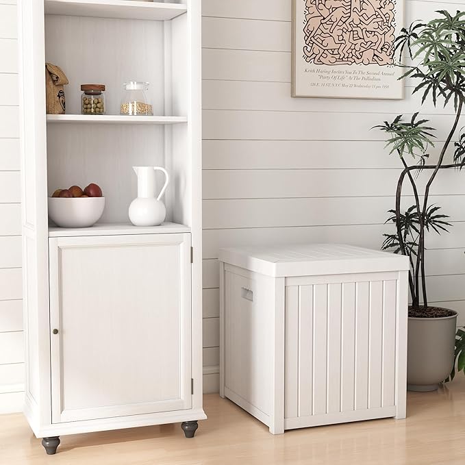 Deck Box, 51 Gallon Front Porch Package Bin Delivery Box for Outside, Small Patio Outdoor Storage Boxes Waterproof, UV Resistant Plastic Resin Pool Storage Bins with lids, White