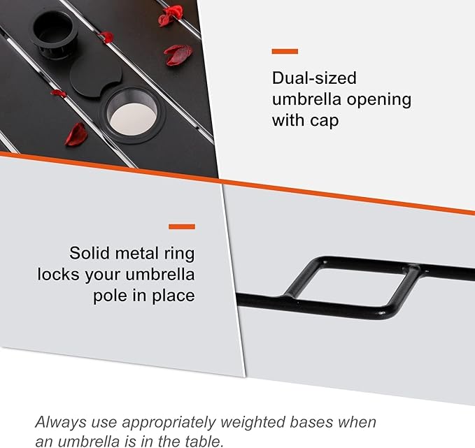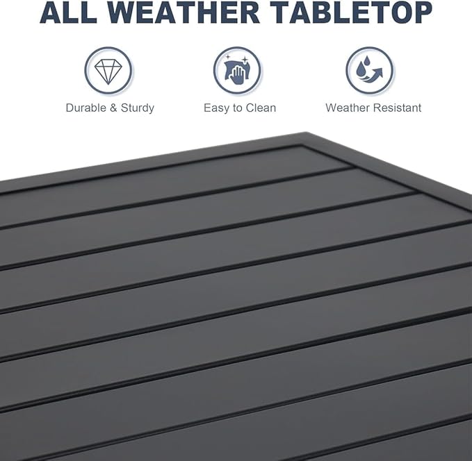 - MODERN DESIGN: Sleek black frame creates a contemporary look, while the slatted table top allows for quick water drainage