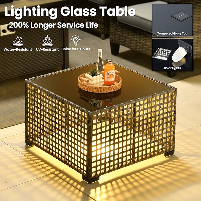 - Solar-Powered Light Table: The uniquely designed coffee table features built-in solar panels that automatically charge by day and emit warm, inviting light at night, it creates the perfect ambiance for evening gatherings while offering convenient space for drinks and snacks
