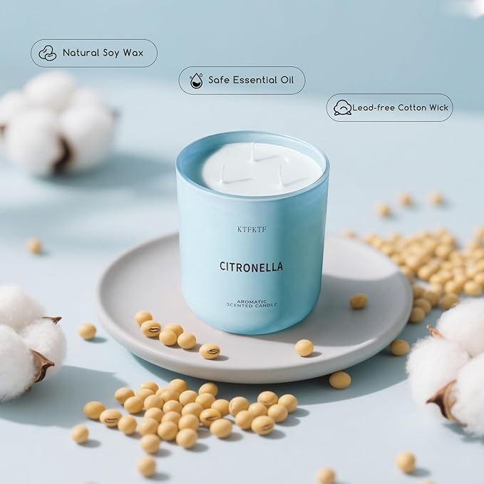 Citronella Candles Indoor Outdoor, 14.2oz Large Scented Candle for Home, Long Lasting Aromatherapy Candles | Non-Toxic Essential Oil & Soy Wax | Natural Herbal & Woody Aroma