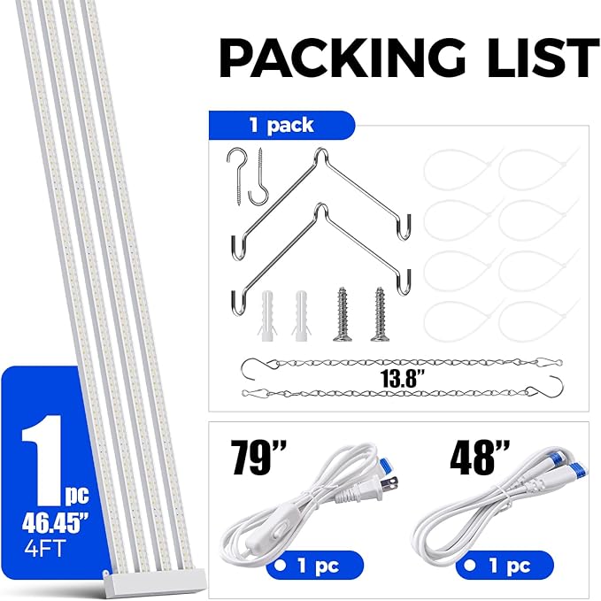 - Linkable Design & 360° Heat Dissipation: 4ft plant light with 4 spaced LED panels for enhanced airflow, ensuring 360° cooling and longer LED lifespan. Ideal for seedling starters, greenhouses, plant shelves and kitchens