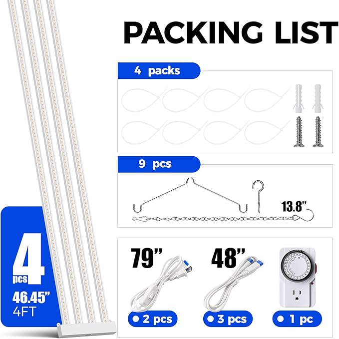 - Linkable Design & 360° Heat Dissipation: 4ft plant light with 4 spaced LED panels for enhanced airflow, ensuring 360° cooling and longer LED lifespan. Link up to 4 lights with a 79" extended power cord featuring an on/off switch. Customizable lighting accelerates indoor seedling growth through quick, targeted nurturing. Ideal for seedling starters, greenhouses, plant shelves and kitchens