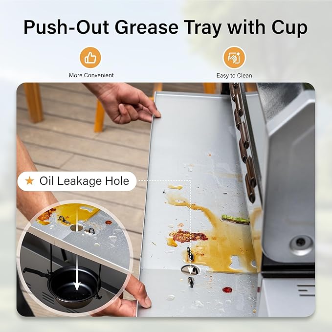 - ๐๐ฎ๐๐-๐๐น๐ฒ๐ฎ๐ป ๐๐ผ๐ป๐๐ฒ๐ป๐ถ๐ฒ๐ป๐ฐ๐ฒ: The slide-out grease tray and removable drip pan make cleanup a breeze. Spend less time scrubbing and more time enjoying your gas BBQ grill - perfect for busy hosts who love hassle-free grilling