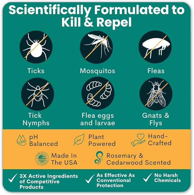 - β PROTECTION FROM NATURE WITH NATURE: We prioritize you & your pet's safety by avoiding harmful, synthetic ingredients. Instead, we harness the natural defense of cedarwood and rosemary oil. Our eco-friendly formula provides a safe alternative to traditional treatments like collars, pills, and drops filled with synthetic pesticides, or insect repellents filled with deet. Enjoy peace of mind with our premium, non-toxic, nature-powered solution.