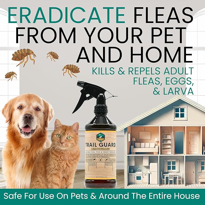 - β PREVENT& ELIMINATE FELA INFESTATIONS: Trail Guards powerful formula effectively stop flea infestations before they start and eradicates existing ones on your dog and around your house. Safe to use on your belongings, it helps stop infestations quickly, brining relief to you & your dog.