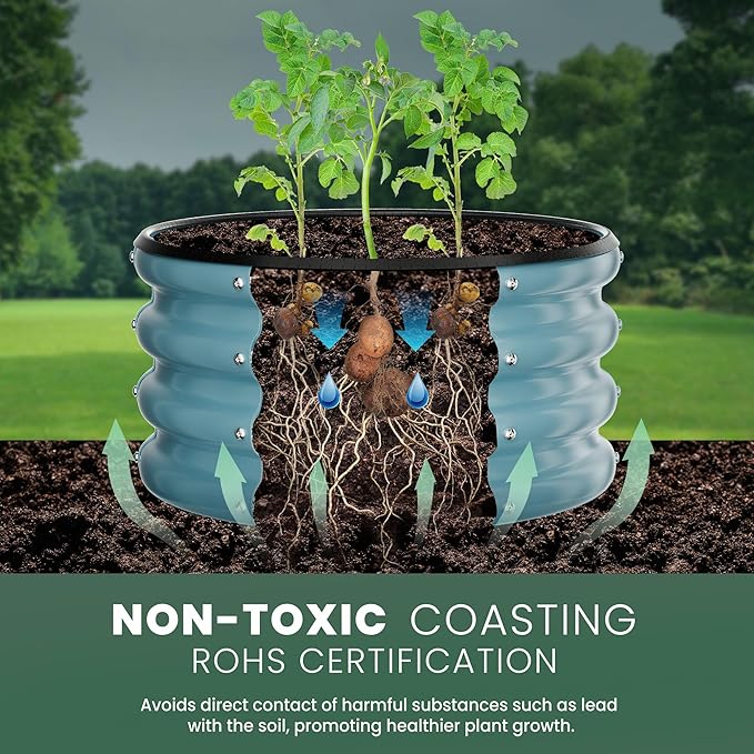 - 【5 Minute Setup】 Our round garden bed installs effortlessly, just unfold and connect for instant use. No tools needed!