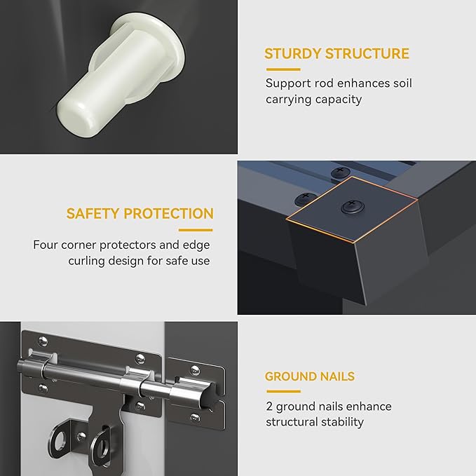 - ALL-SEASON SUITABILITY - The garden shed is constructed with thickened galvanized steel and a resilient frame, and offers impressive rust protection. The design includes overlapping wall panels and a tilted roof to prevent rainwater accumulation, enabling year-round use