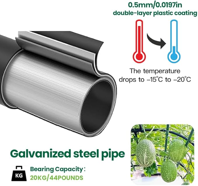 - Galvanized Steel Arobrs With Plastic Coating: Rust-proof for maintenance-free durability! heat-insulating surface protects delicate vines from burns, ideal for grapes, cucumbers & flowering vines.