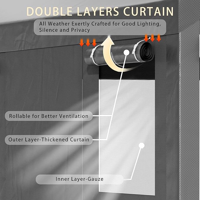 - 【Removable Sidewalls Window and Doors】This PE carport shelter has 2 removable sidewalls with Roll-up Ventilation Windows. The Carport can help with airflow, and prevent moisture. It also has two removable doors with zippers. You can roll the doors up or down as you wish. Or remove all the sidewalls and doors, only leave the canopy cover on for outdoor activities.