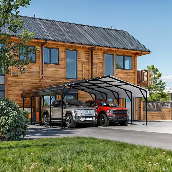 - 【Heavy Duty Carport】 This Carport canopy is made with a rust-resistant powder-coated steel frame to prevent rust and corrosion. Its high-quality galvanized steel roof provides excellent anti-rust and sun protection, ensuring reliable protection for your belongings.