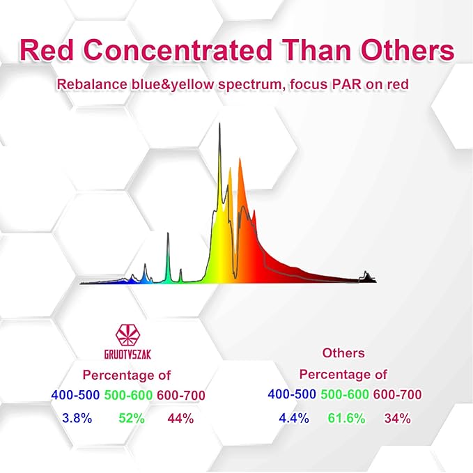 - 🌼【BIGGER BUDS】🌻: More PAR focus on RED to improve light utilization for photosynthesis designated for blooming bigger buds on flowering stage.