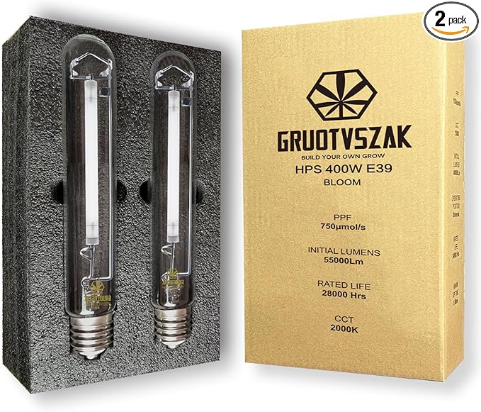 HPS 400W Grow Light Bulb E39 750μmol 2000K Red Concentrated Spectrum 55000 Lumens Bloom Flowering High Pressure Sodium 2-Pack