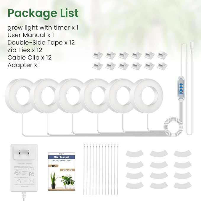 - Two Installation Methods: Effortlessly install the grow lamp using the included zip ties, and strong double-sided tape, and it also comes with wire clips for a secure and tidy setup. Create a thriving indoor garden with this versatile plant grow light.
