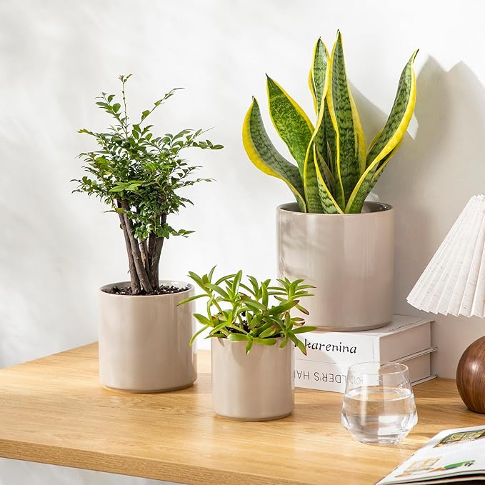- 【Ceramic Plant Pots】 This set includes three beautifully crafted ceramic flower pots in 4, 5, and 6-inch sizes, perfect for growing a variety of plants and flowers.