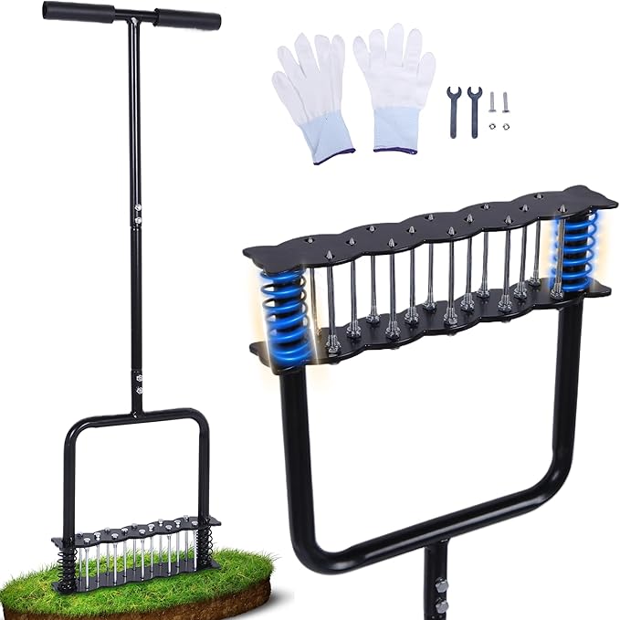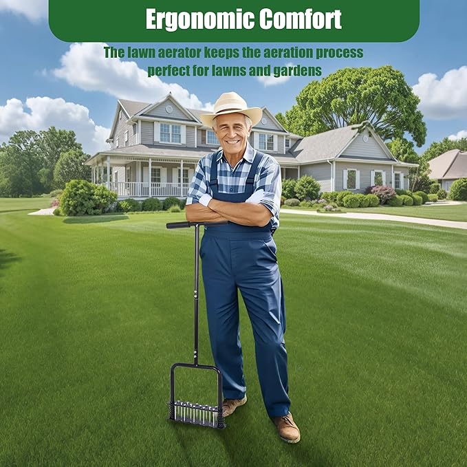 - Tool-Free Setup Easy Storage - This manual lawn aerator requires no tools for quick setup. After disassembly, it's compact and portable, making it a space-saving, effective solution for lawn maintenance. Perfect for homeowners