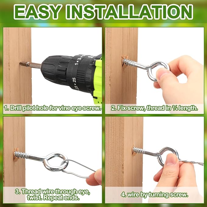 - Complete Package for Convenience: the wire trellis kit Includes 61m trellis wire and 20 eye screws (diameter 2/10 inches); This package ensures you have all necessary components right at your fingertips, making set up a breeze and eliminating the need for additional purchases