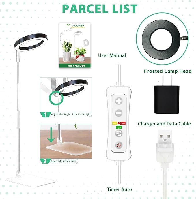 - Desk Grow Light for Home Garden Lighting Solution: This plant grow light comes with a detachable base, it has 2 use methods: 1. Base method ; 2. Insert into the soil directly. perfect solution for office desk,living room, dark corner in house,doesn’t take up valuable space, they just fit in with decor.Halo light design to help your plants grow happier and healtier!