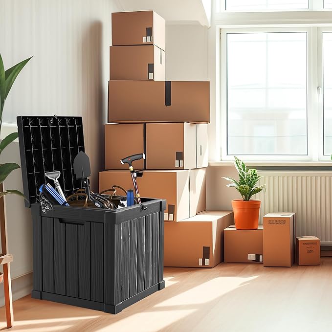 - TRANSFORM YOUR SPACE: Whether used indoors as a laundry storage solution or outdoors for patio items like cushions, garden tools, this patio storage box excels. Its multi-functional design makes it suitable as a side table, patio seat, storage bench, or footstool