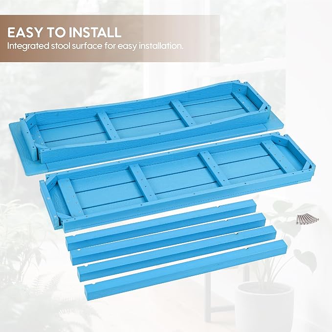 - [Like Real Wood] The surface wood grain texture of our outdoor side table mimics high-end teak, achieving a visual accuracy of 98%. Made of eco-friendly HIPS material, it features excellent weather resistance and UV protection, ensuring it wonโt fade in various weather conditions, including intense sunlight, rainy days, and heavy snow. It is three times more durable than ordinary resin chairs.
