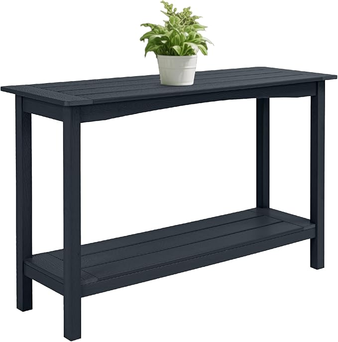 Weatherproof HIPS Outdoor Console Table, 48'' 2-Shelf SideTable Indoor/Outdoor Use, Multifunctional Buffet Table Bar Storage Organizer for Entryway,Yard, Patio, Outside Plant Stand Table, Black