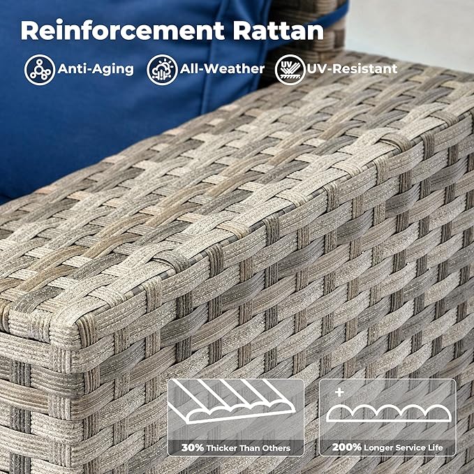 - All-weather Wicker Rattan: Our outdoor sofa sets have very durable PE wicker rattan for all-weather use and a natural texture with good coloring. The high-quality patio seating made of powder coated steel frame ensures good strength and stability