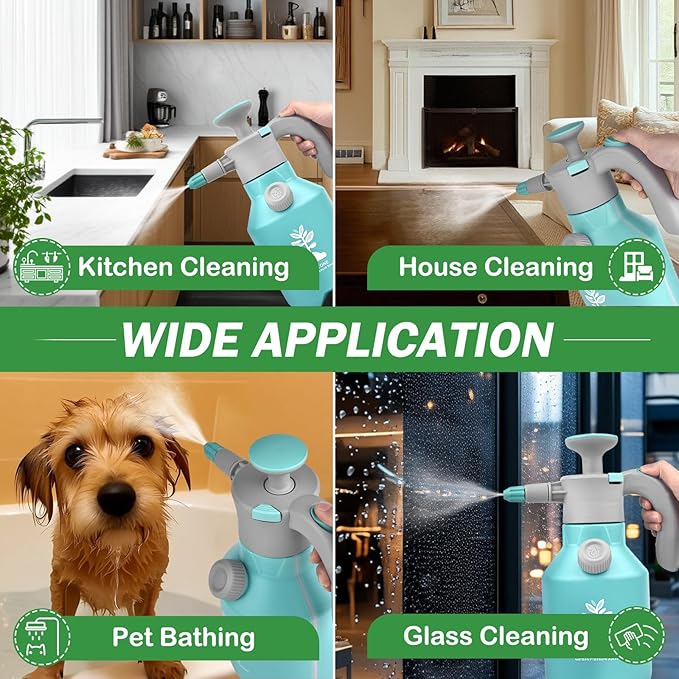- EFFORTLESS REFILLS& MULTIPURPOSE:The side port allow you to refill water more easily without removing the top and the visible water level makes it easy to monitor fluid levels when watering.This great handheld pump sprayer is suitable for a wide range of applications,including home gardening, greenhouse planting,wash bicycles,pet bathing,and various indoor or outdoor cleaning,it would be an excellent choice for both gardening enthusiasts and professional gardeners.