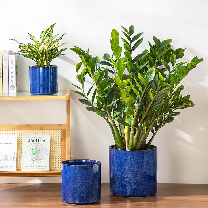vancasso 6"+8"+10" Ceramic Pot for Plants, Large Outdoor Indoor Planter Pots with Drainage Holes, Set of 3, Blue