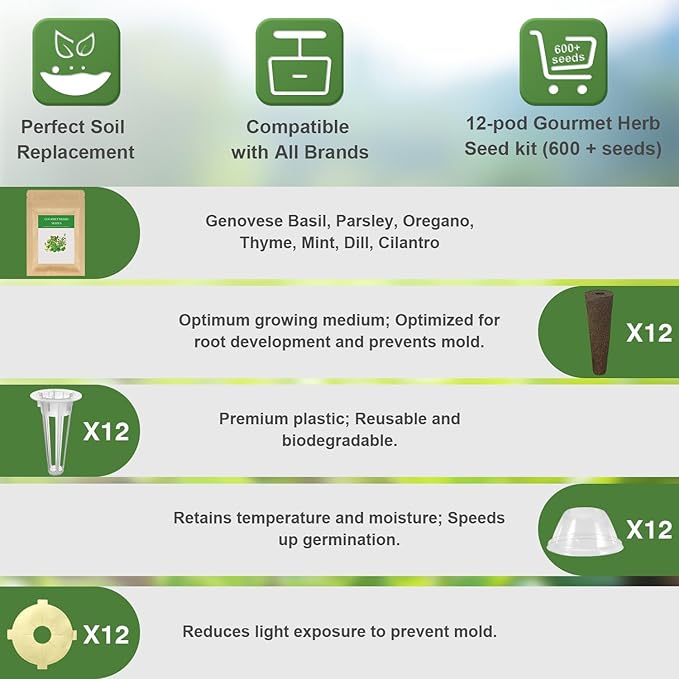 - 【Great Alternative to Big Brands】Our seed pod kits are perfectly compatible with Aerogarden, idoo, Ahopegarden, MUFGA, and most other hydroponics growing systems. Integrate convenience and reliability with economical viability.