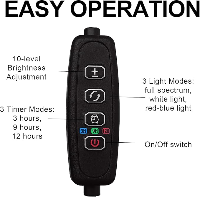 - Height adjustable and 10 Level Brightness: The height range is 36"-51",It also has 10 brightness settings, from 10-100% to meet each plant's lighting requirements at different stages.