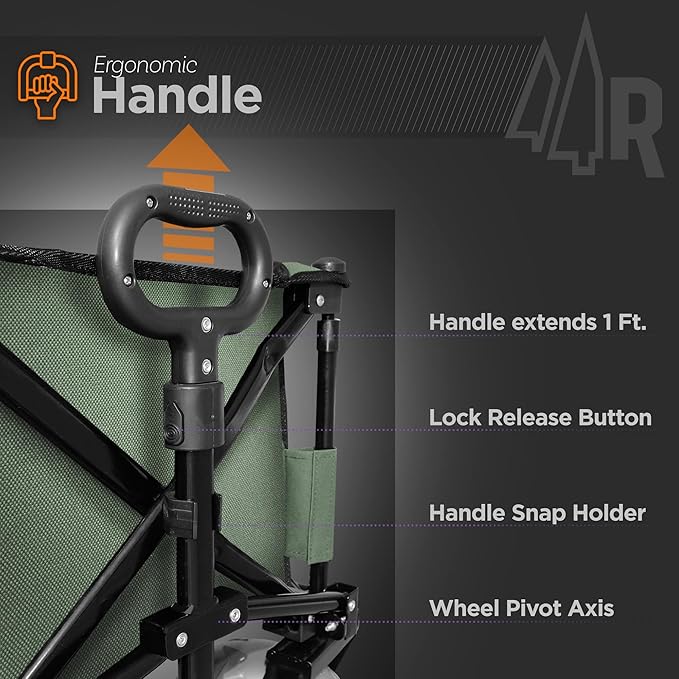 - All-Terrain Wheels: The cart features 9" diameter 4" wide all-terrain balloon wheels that are designed to roll smoothly over sand and other rough surfaces, so you can easily take it anywhere you want to go.