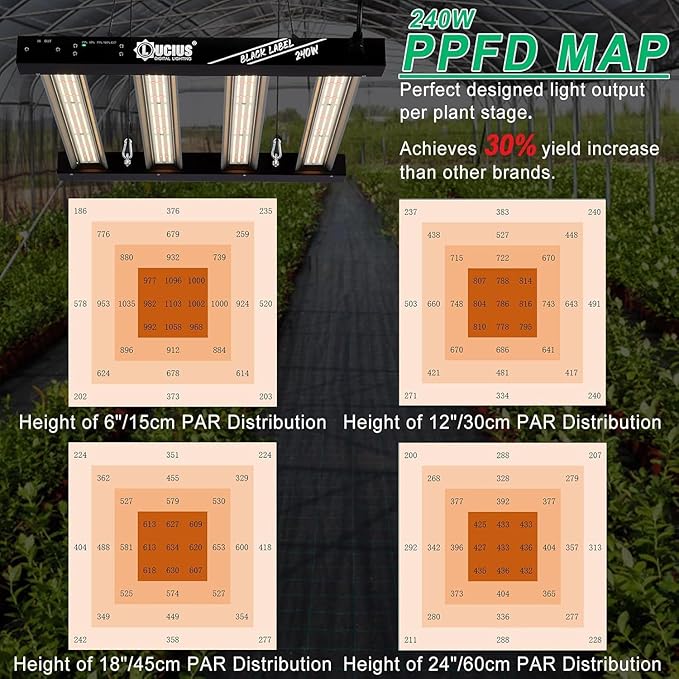 - 【Full Spectrum LED for All Growth Stages】This 240W LED grow light provides a full spectrum ideal for seed starting, vegetative growth, and flowering. With 1152 white and 48 red diodes, this plant grow light mimics natural sunlight to boost plant health, yield, and quality, perfect for beginners and experts alike.