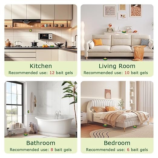 - Ideal for Kitchens, Bathrooms, and More: This gel bait is perfect for high-traffic areas like kitchens, living rooms, and bathrooms, where roaches are commonly found. It also works in hidden, hard-to-reach spots such as behind refrigerators, dishwashers, toilets, and storage cabinets. Whether in cracks, crevices, or under sinks, this bait targets roaches wherever they tend to hide and infest, ensuring comprehensive coverage throughout your home.