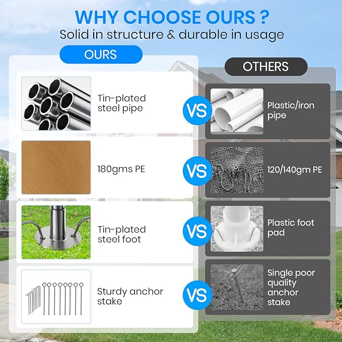- Multi-Purpose Protection:Not just for vehicles, this 10x20 FT carport is ideal for storing boats, RVs, motorcycles, and even as a shelter for outdoor events like parties, picnics, or gatherings. Its versatile design ensures it can adapt to various needs, providing reliable shelter wherever you need it.