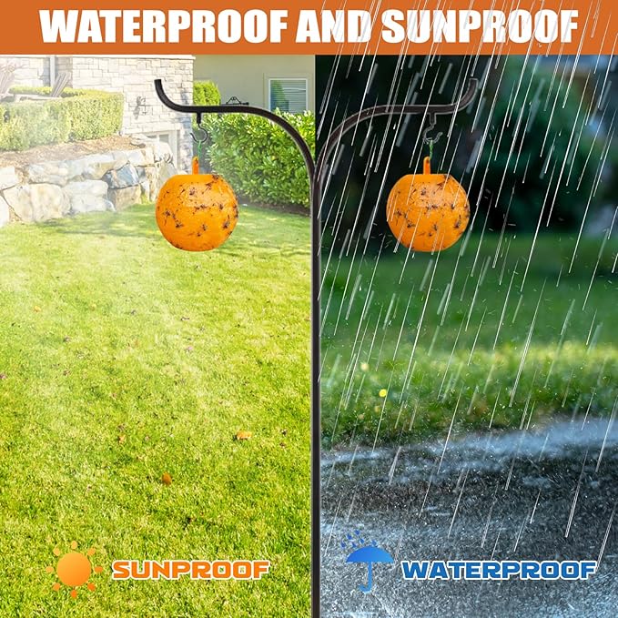 - Highly Adhesive Glue: This fly trap features the latest spherical design, with 360-degree coverage and a visual effect that mimics the shape and color of fruit to attract flies. It uses high-quality glue with strong adhesion to prevent pests from escaping.