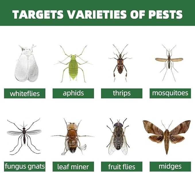 - High-Efficiency Pest Capture Coated with ultra-sticky glue that attracts and traps gnats, fruit flies, whiteflies, mosquitoes, and more—without chemicals or sprays.
