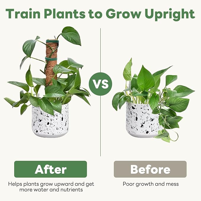 - Strong Support for Climbing Plants: Each coir moss stick is reinforced with durable wooden stakes, providing an excellent grip for roots to keep plants upright. Besides, these plant posts blend seamlessly with the natural plant environment, enhancing the overall aesthetics of your green space