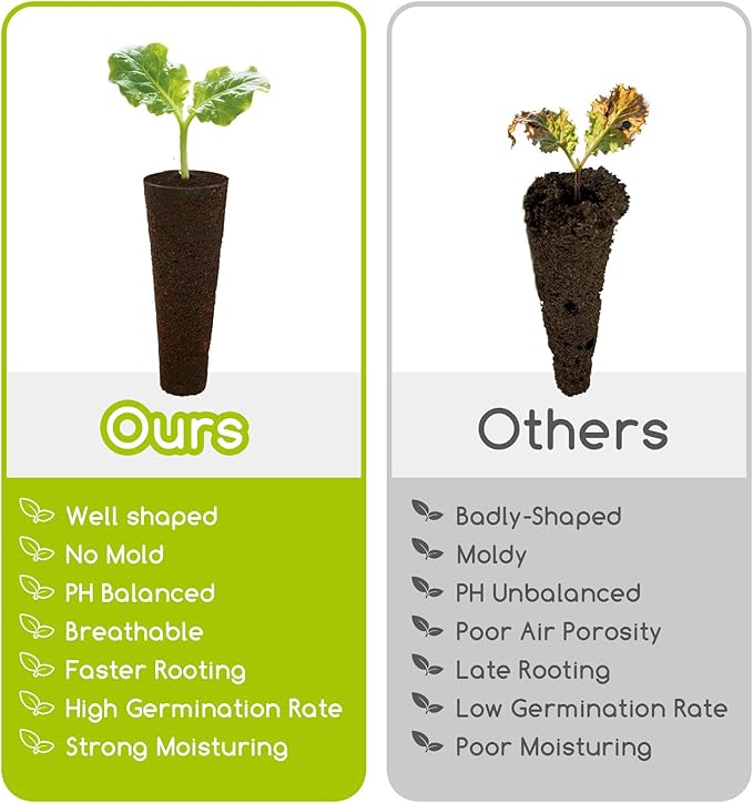 - PREMIUM GROW MEDIUM FOR HIGH GERMINATION RATE & RAPID ROOT GROWTH: Made of high-quality mineral-rich natural peat, Bironzoco Grow Sponges Seed Pods provide rich nutrients, PH balanced environment and breathable structure that allows for better air water ratio, which are ideal conditions for higher germination rate and rapid root growth. These seedling starter replacement pods are degradable when disposed of and improve soil quality.