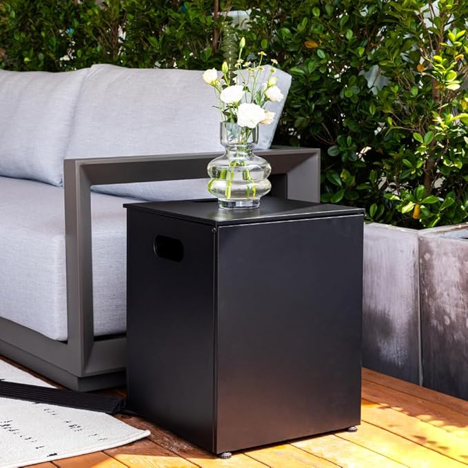 - ✓ CSA Certified Outdoor Fire Pit Set – CSA certified propane fire table meets safety standards. This elegant propane fire pit table set, features 13.2 lbs of lava rocks, canvas cover, propane tank cover, windscreen, burner lid, and a natural gas conversion kit.