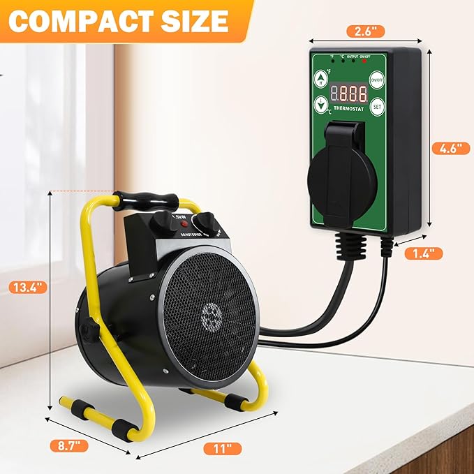 - DIGITAL THERMOSTAT INCLUDED: Equipped with a digital thermostat to accurately measure and maintain the ambient temperature, ensuring optimal warmth for plant growth and comfort. Perfect for greenhouses, heat mat, grow tents, and other temperature-sensitive environments