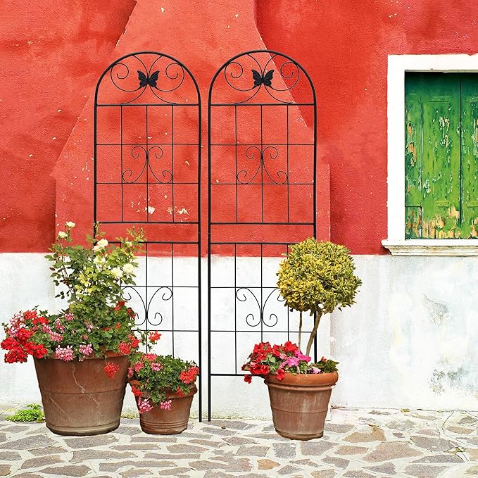 - Multi-Purpose Use: This versatile Iron Black Garden Trellis is suitable for a variety of climbing plants, including ivy vines, roses, morning glories, clematis, jasmine, grapes, blackberries, cucumbers, beans, and peas. Transform your outdoor space into a flourishing garden paradise.