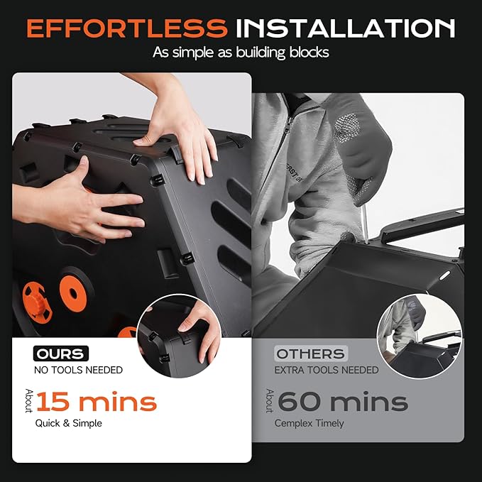 - 【Super Fast Assemble】Unlike traditional tumble compost bins, TOP XIAN 2025 new upgraded compost bin assembles in minutes. Simply snap components together like sturdy building blocks, no frustrating screws or wrenches. Ideal for composting beginners or anyone who hates complicated assembly