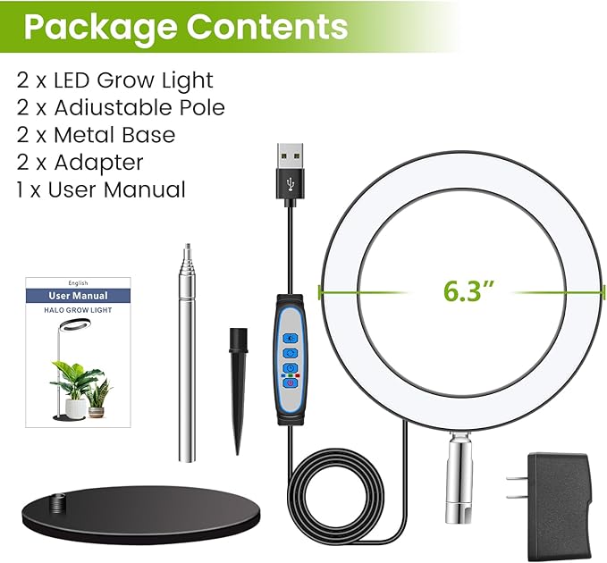- Multipurpose Halo Plant Light: Our indoor plant light comes with a metal base and plastic ground stakes, 2 installation methods to suit different scenarios, making it easy to use on various surfaces such as desktops, countertops, or floors