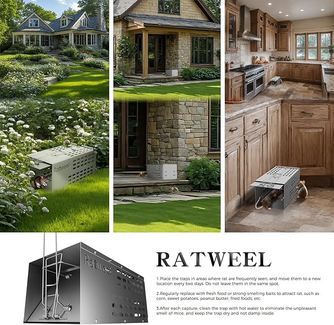 - 【Humanized Designed With Physical Mechanism】Independent bait settings can attract animals by smell. The cage can only enter. There is no sharp device inside. The rear door device is combined with the handle to facilitate your subsequent release, ensuring that people do not come in contact with animals during the release process, and reducing discomfort caused by contact