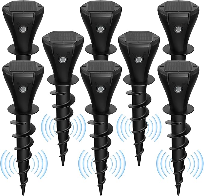8 Pack Mole Repellent Solar Powered, Snake Vole Repellent Outdoor, IP65 Waterproof Snake Deterrent Gopher, Waterproof Sonic Mole Spikes for Lawn and Garden, Get Rid of Moles, Groundhogs, and Rodents