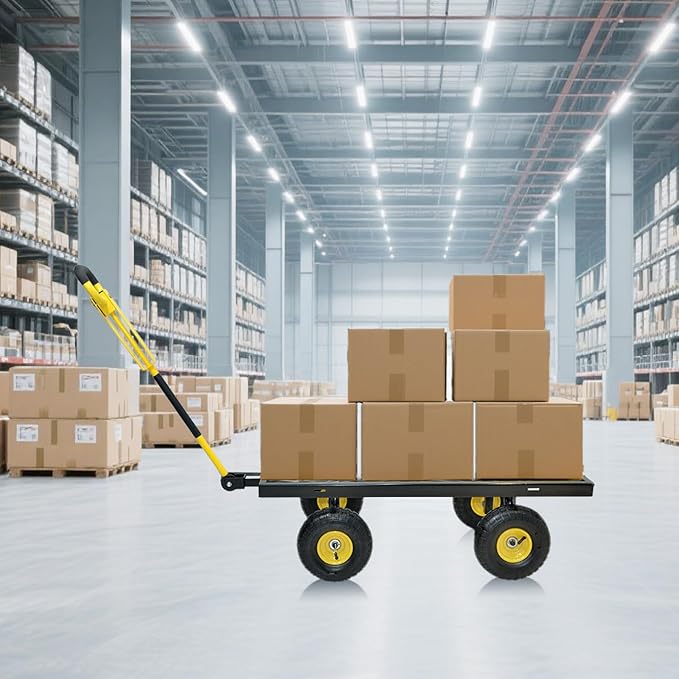 - 950LB Heavy Load Capacity: Built with a solid steel frame and reinforced construction, this cart handles up to 950 lbs—perfect for heavy-duty hauling of firewood, tools, or farm supplies.