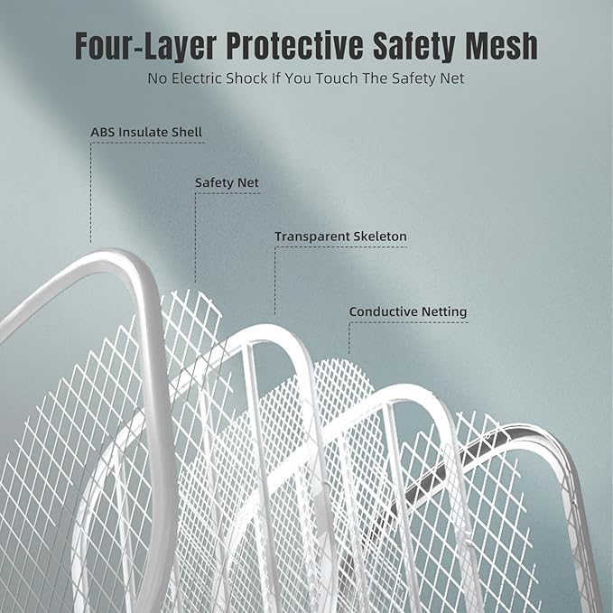 - SAFE TO TOUCH - Electric fly swatter with 3-layers mesh and double insurance switch design for safety, always keeps your hand safe from the high voltage grid. With an activation button, thereโs no need to worry about accidental zapping. Widely used for home, kitchen, patio, outdoor, camping, barbecue.