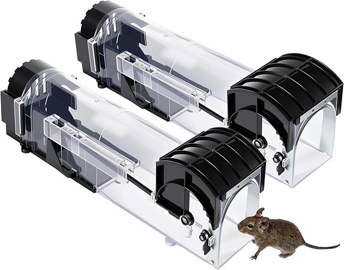 Humane Mouse Traps 2-Pack, 12.2 Inches Enlarged No Kill Rat Traps for Chipmunk - Easy to Use & Clean, No Touch Release, Sensitive, Pet and Children Friendly Mice Trap Catcher Indoor and Outdoor