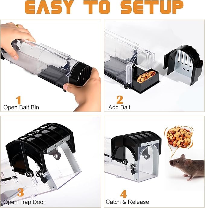 - 【Reusable Mouse Traps】: Unlike disposable mouse cage or mouse sticky plates, our rat trap is designed for reuse. Usually, bait is placed in the cage to lure the rat. Once the rat is captured, it can be safely released elsewhere and then the trap can be set again to catch.