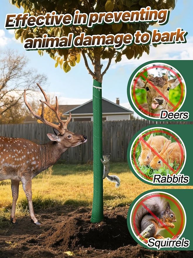 - Durable Three-Layer Tree Wrap: Made with 3 layers of non-woven fabric and 1 layer of breathable film, this tear-resistant, weatherproof wrap protects trunks while allowing airflow and moisture retention. Soft and reusable, it won't harm bark—ideal for keeping trees healthy through winter.