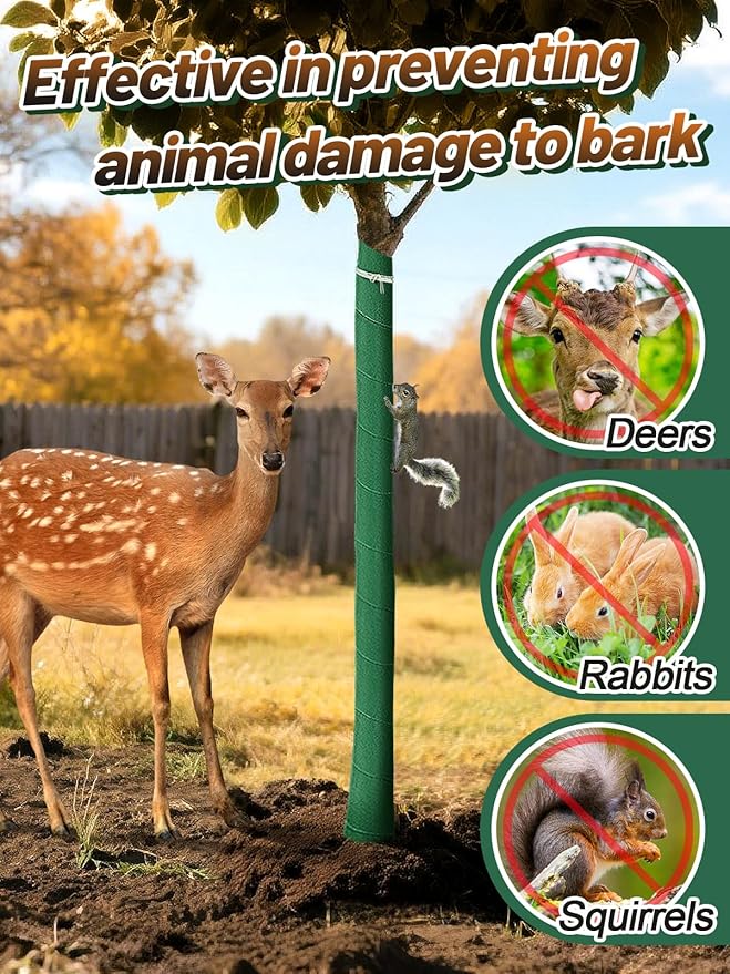 - Durable Three-Layer Tree Wrap: Made with 3 layers of non-woven fabric and 1 layer of breathable film, this tear-resistant, weatherproof wrap protects trunks while allowing airflow and moisture retention. Soft and reusable, it won't harm bark—ideal for keeping trees healthy through winter.